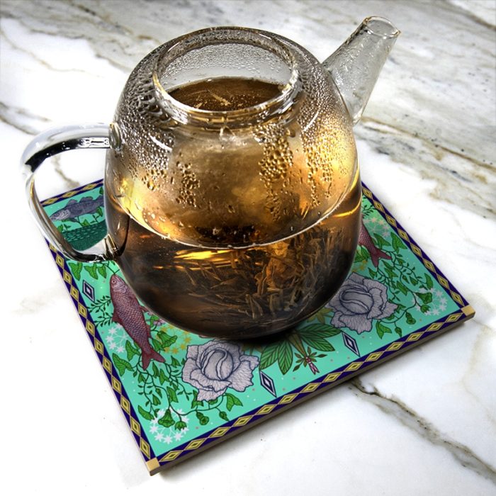 Pour une décoration personnalisée ou un cadeau original, voici une oeuvre exclusive de Michaël Cailloux, imprimée sur un sous-plat en céramique stratifié sur du liège.