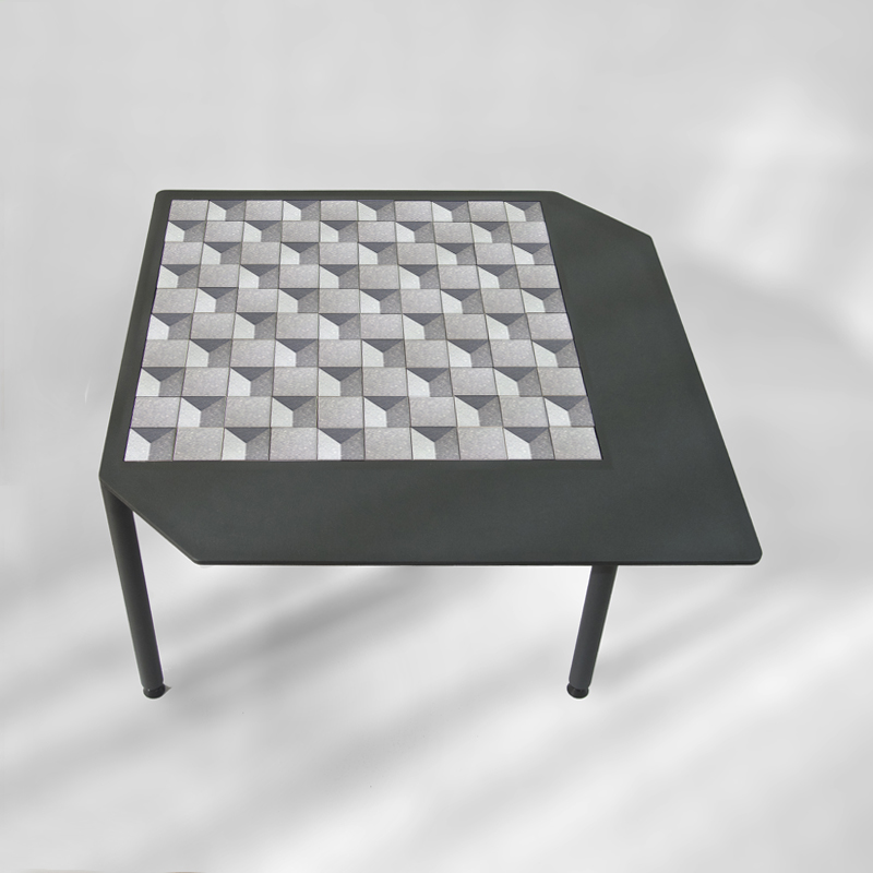 La table basse BAMosaïc III (forme carrée en perspective) a été dessinée par Alix Welter.
